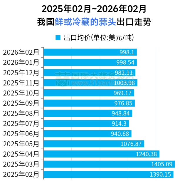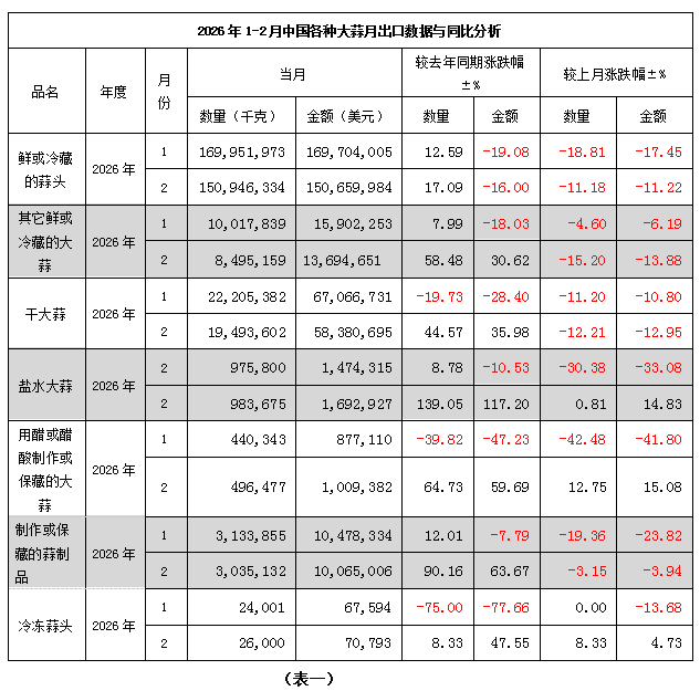 2026年1-2月大蒜出口量增价跌