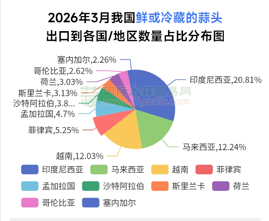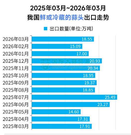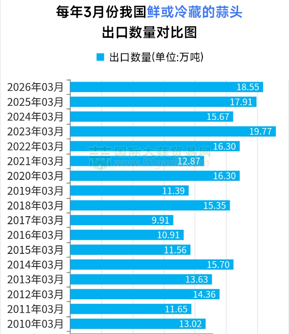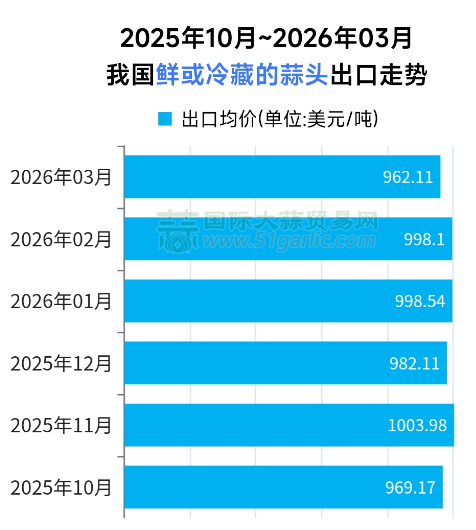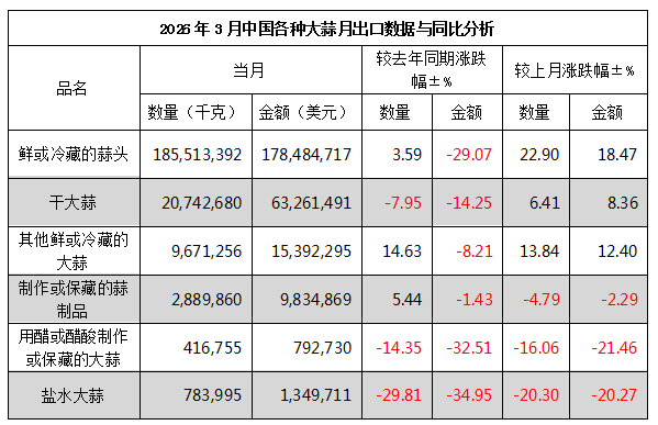 2026年3月份大蒜出口“量增价减”新