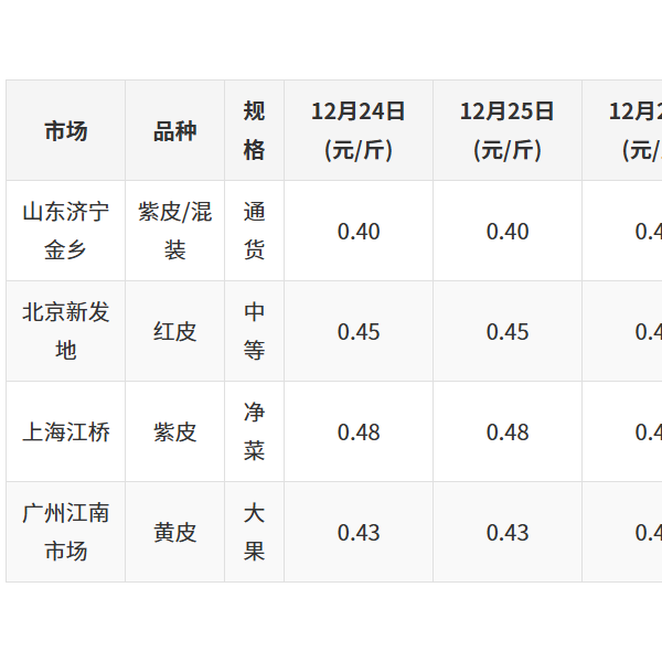 12月28日洋葱全国价格行情分析:供需两端共振,节前备货支撑价格稳中微涨