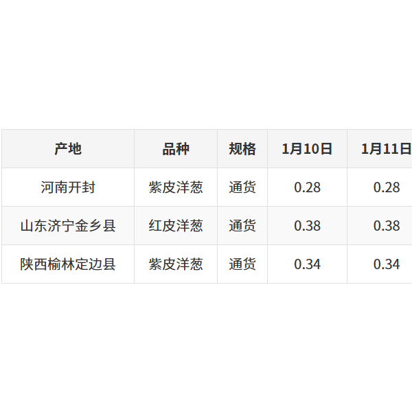 1月10日洋葱全国价格行情分析:供需双稳格局延续,节前备货带动短期需求回升
