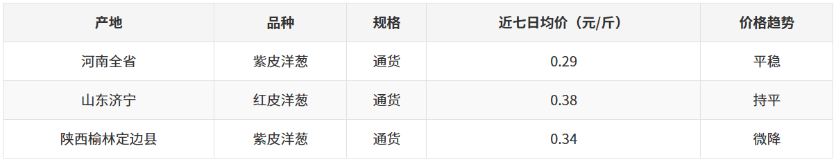 主要产地近七日洋葱价格表