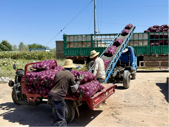 9月1日在定边街道十里沙村的洋葱种植基地,洋葱即将发往全国各地。