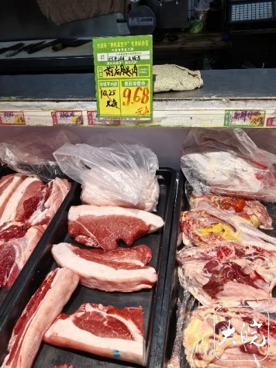 大皖新闻记者来到肉类销售区,发现其中一种猪前后腿肉价格从10.25元/斤降到了9.68元/斤;粮油销售区杂交米的价格也从2.23元/斤降到2.10元/斤等。