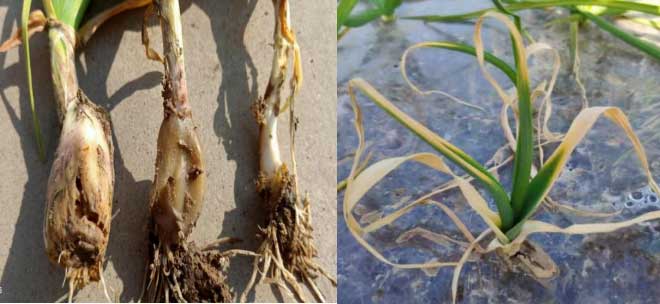 大蒜根腐病是一种顽固性土传病害,要做到无病预防,发现及时治疗,不然严重影响质量和产量。